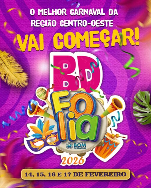 O “BD FOLIA” 2026, acontecerá nos dias 14, 15, 16 e 17 de fevereiro, com horários diferenciados, repleto de shows com bandas locais, regionais e nacionais, valorizando também os blocos.