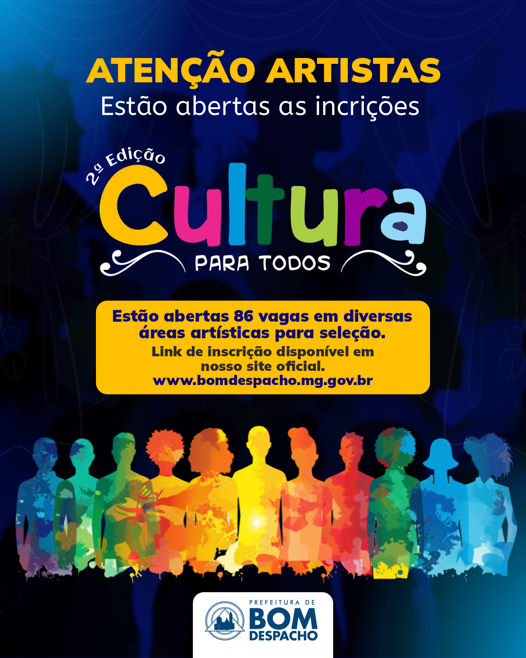 Participe, divulgue e faça parte desse movimento que celebra a arte, a cultura e a criatividade em Bom Despacho.