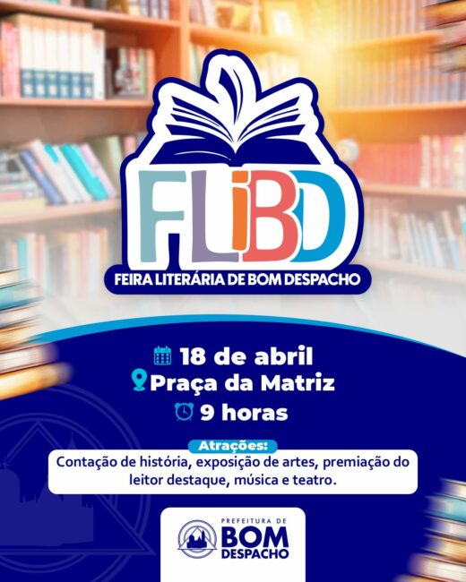 Vem aí a FLIBD – Feira Literária de Bom Despacho, um evento pensado para incentivar o hábito da leitura, valorizar os talentos locais e promover o encontro da comunidade com a arte literária.
