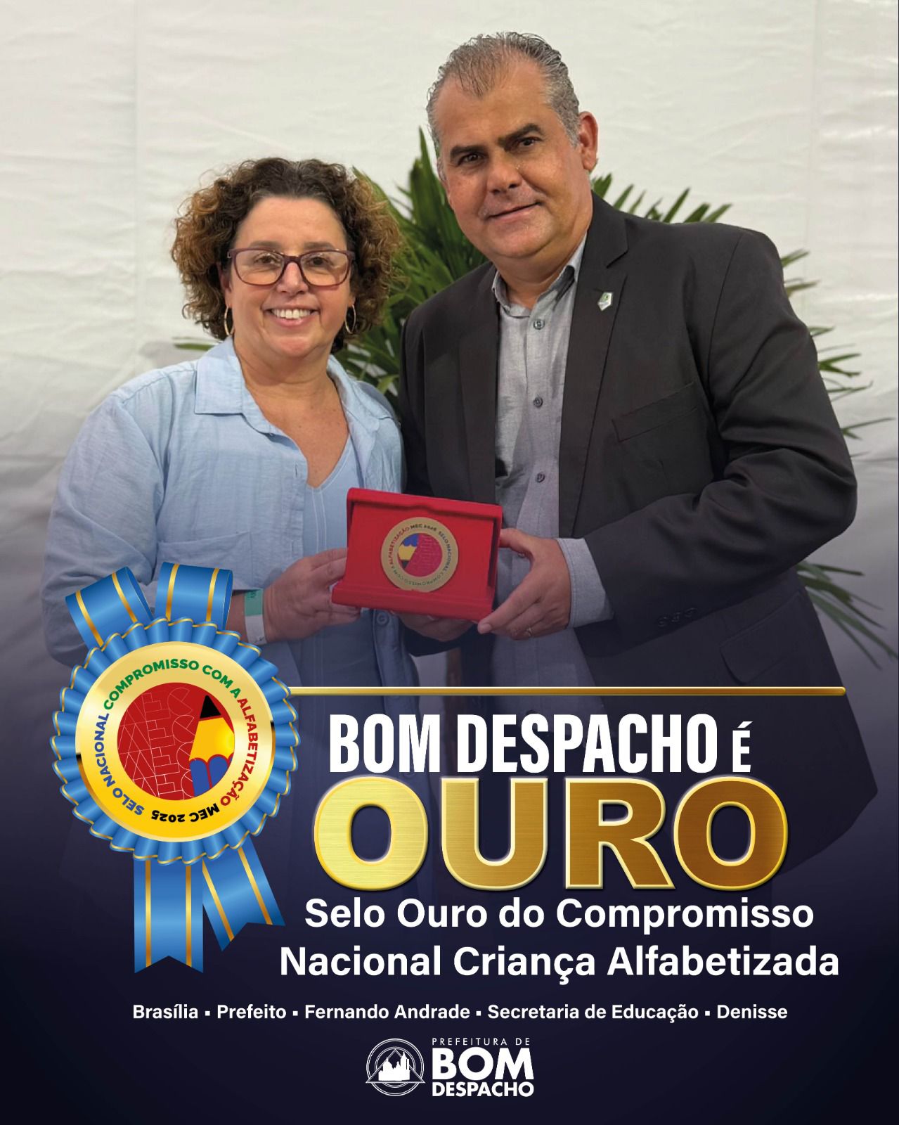 Hoje celebramos em Brasília , na capital do Brasil, um momento de grande significado para a educação de Bom Despacho: a entrega do Selo Ouro do Compromisso Nacional Criança Alfabetizada.